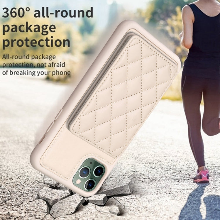 For iPhone 11 Pro BF25 Square Plaid Card Bag Holder Phone Case(Beige)
