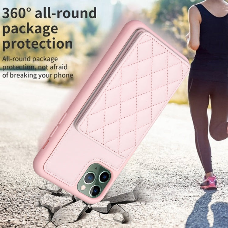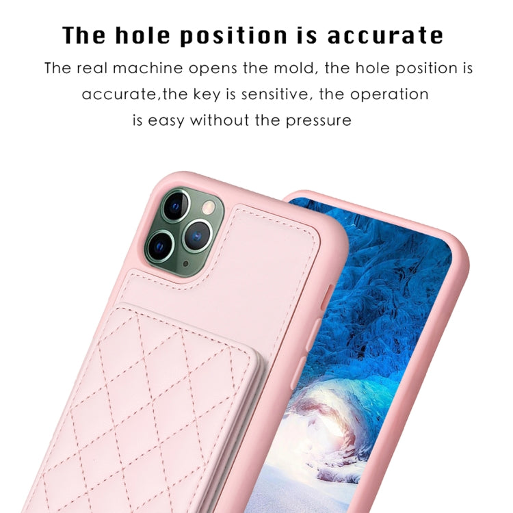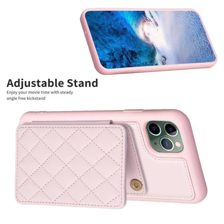 For iPhone 11 Pro BF25 Square Plaid Card Bag Holder Phone Case(Pink)