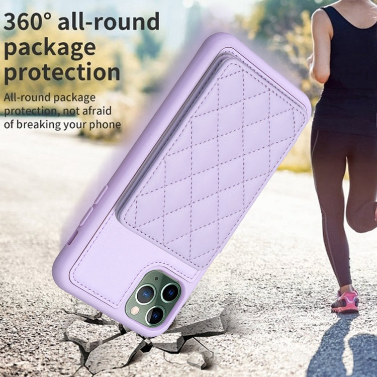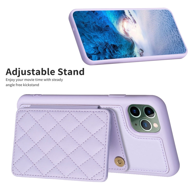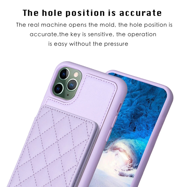 For iPhone 11 Pro BF25 Square Plaid Card Bag Holder Phone Case(Purple)