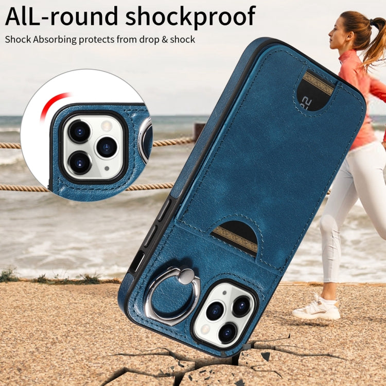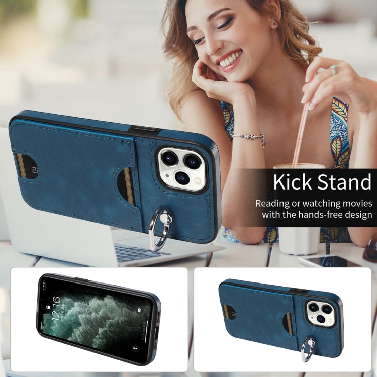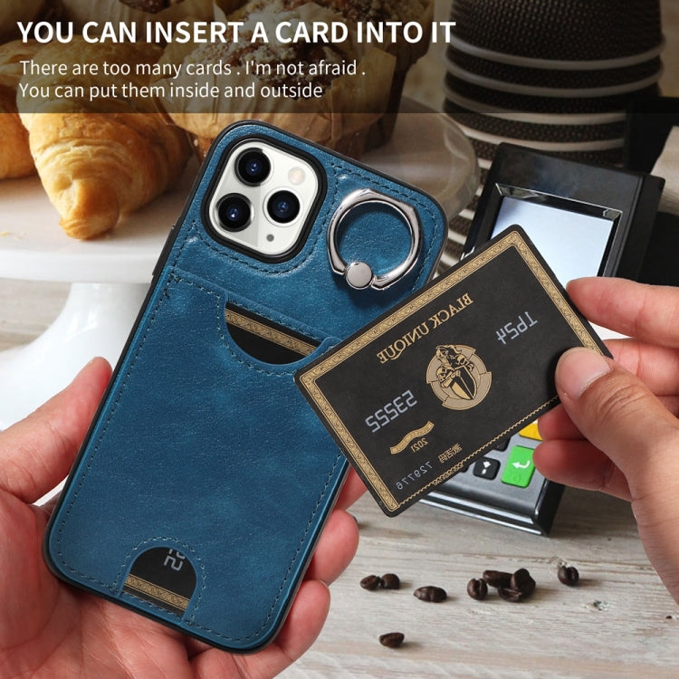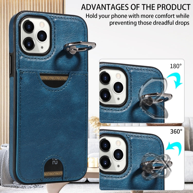 For iPhone 11 Pro Calf Texture Card Slot Ring Holder Phone Case(Blue)
