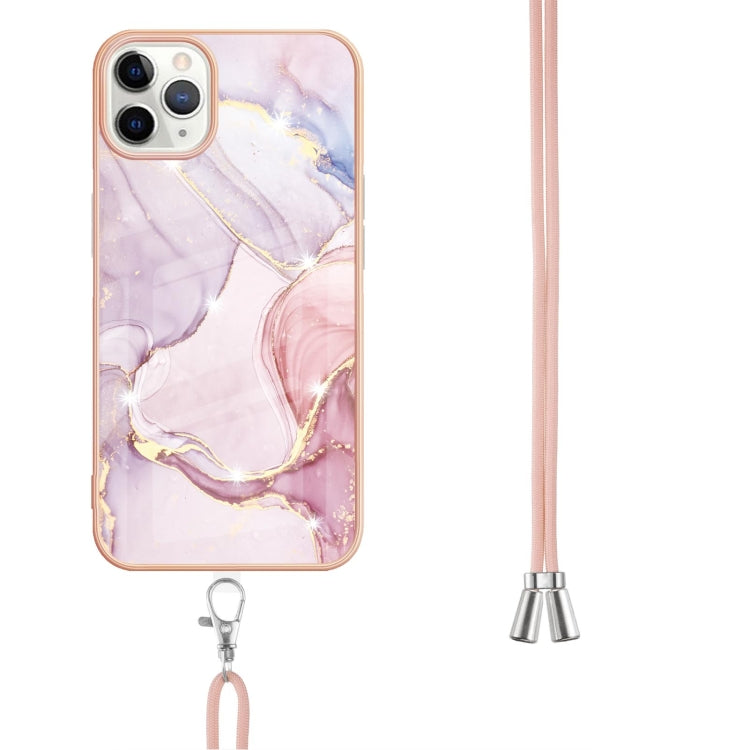 For iPhone 11 Pro Max Electroplating Marble Pattern IMD TPU Shockproof Case with Neck Lanyard (Rose Gold 005)