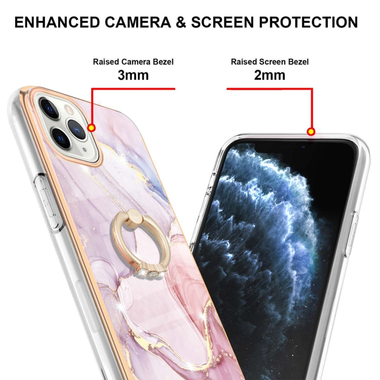 For iPhone 11 Pro Max Electroplating Marble Pattern IMD TPU Shockproof Case with Ring Holder (Rose Gold 005)