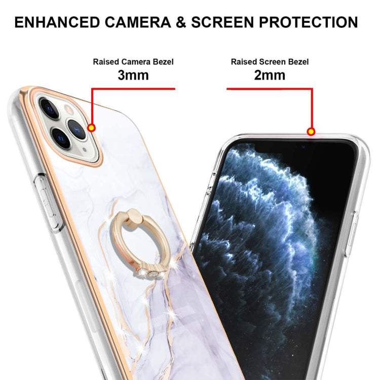 For iPhone 11 Pro Max Electroplating Marble Pattern IMD TPU Shockproof Case with Ring Holder (White 006)