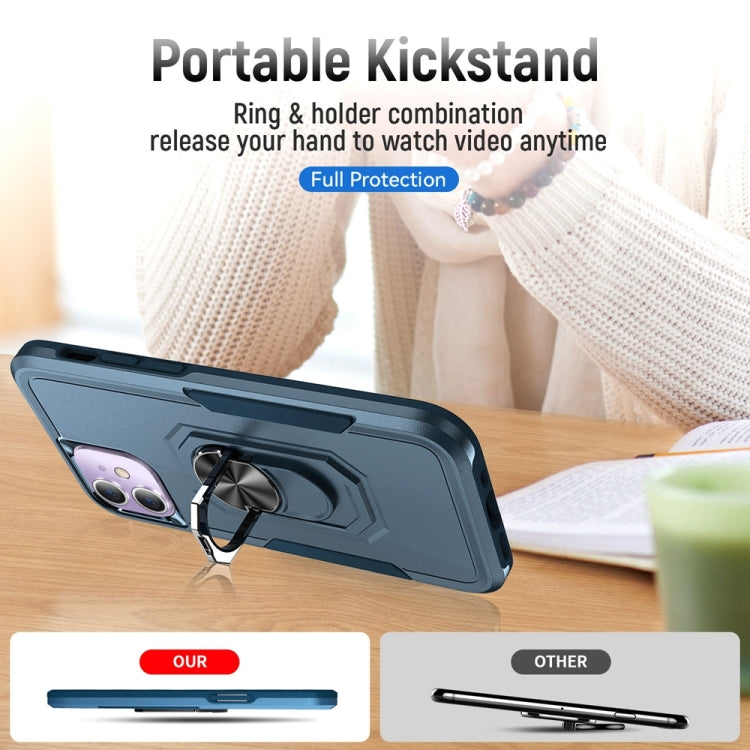 For iPhone 11 Ring Kickstand Heavy Duty Shockproof Phone Case (Blue)