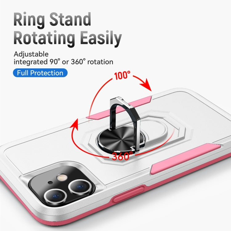 For iPhone 11 Ring Kickstand Heavy Duty Shockproof Phone Case (White)