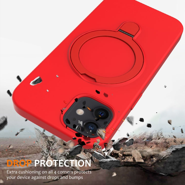For iPhone 12 Liquid Silicone MagSafe Magnetic Phone Case with Ring Holder(Red)