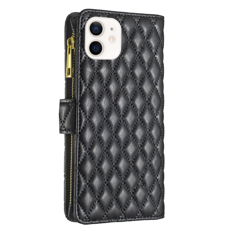 For iPhone 12 mini Diamond Lattice Zipper Wallet Leather Flip Phone Case (Black)