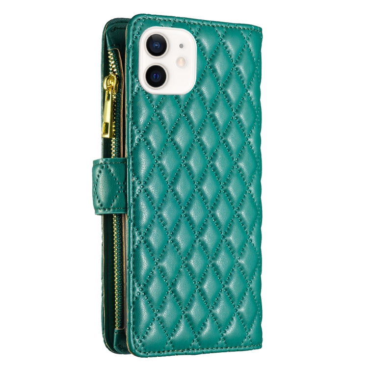For iPhone 12 mini Diamond Lattice Zipper Wallet Leather Flip Phone Case (Green)