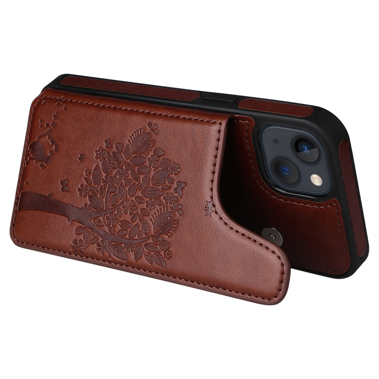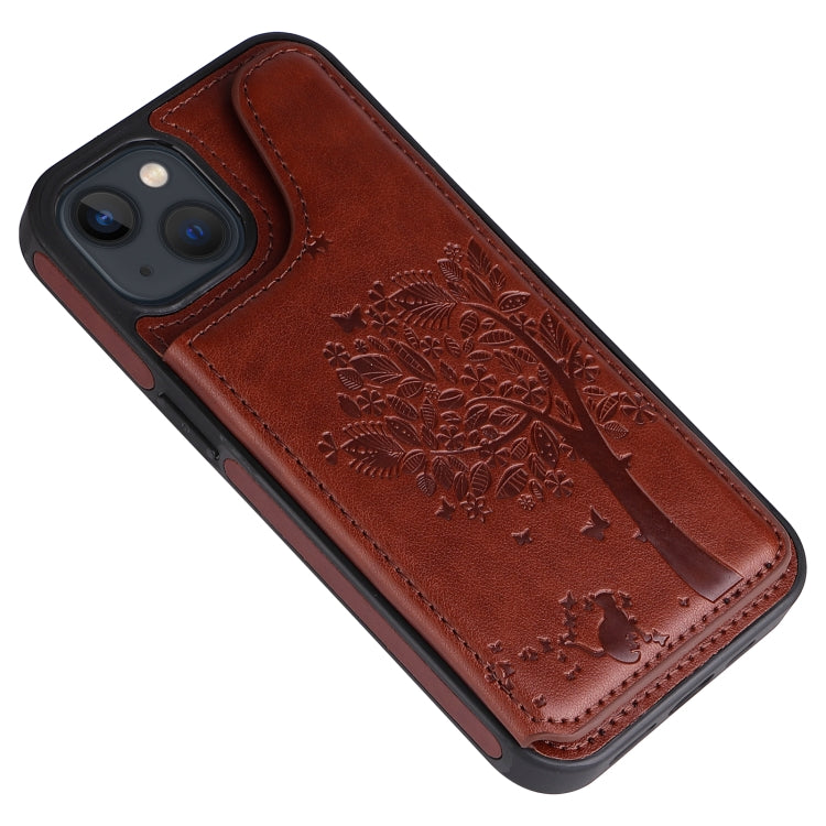 For iPhone 13 Cat Tree Embossing Pattern Shockproof Phone Case(Brown)
