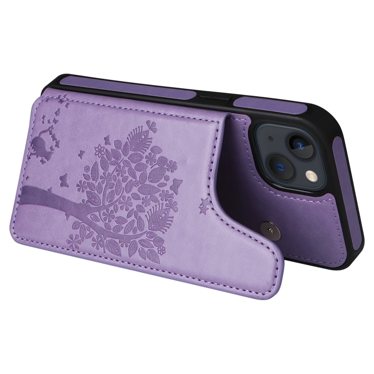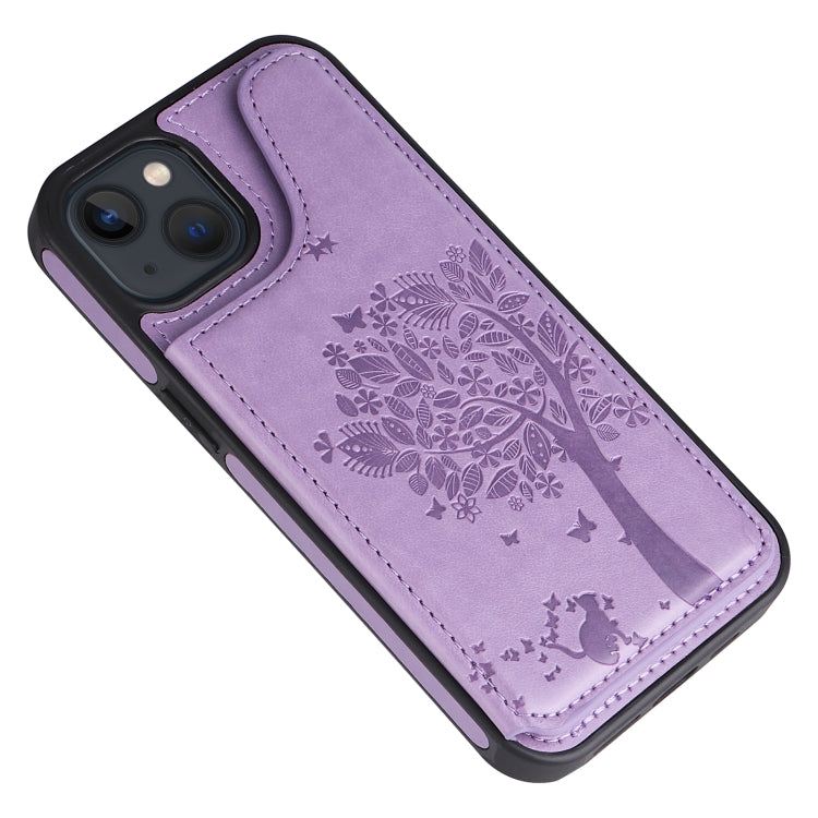For iPhone 13 mini Cat Tree Embossing Pattern Shockproof Phone Case (Purple)