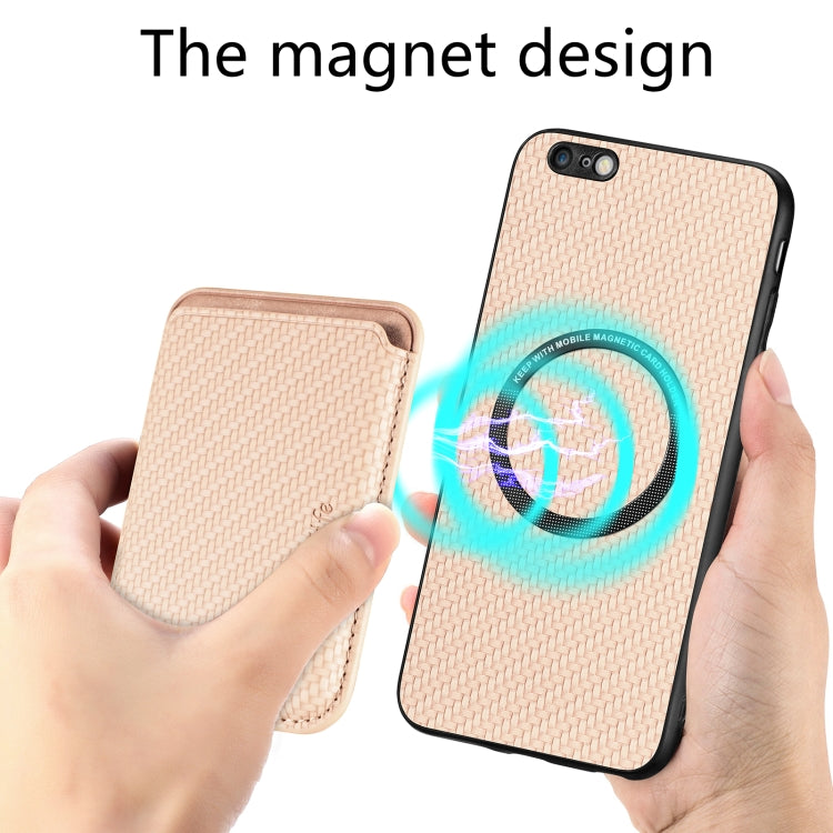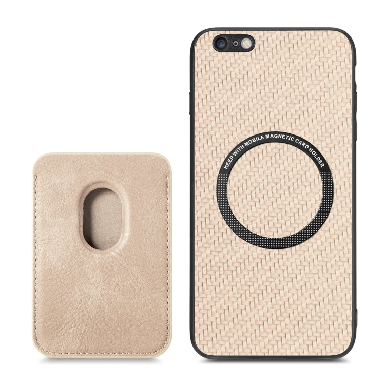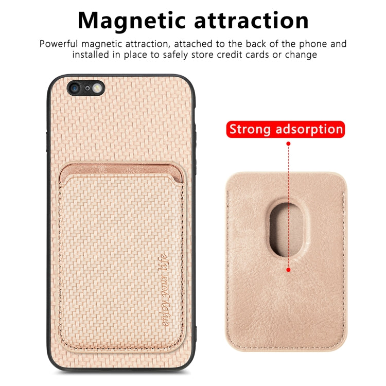 For iPhone 6 Plus / 6S Plus Carbon Fiber Leather Card Magsafe Magnetic Phone Case(Khaki)