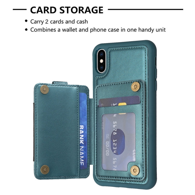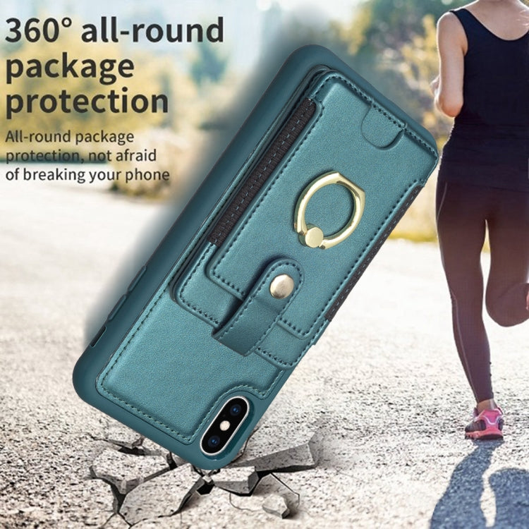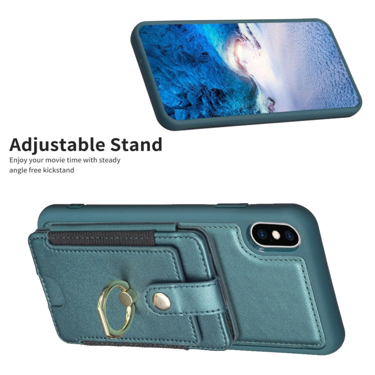 For iPhone X / XS BF27 Metal Ring Card Bag Holder Phone Case(Green)