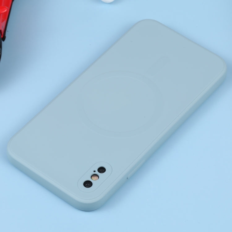 For iPhone XS Max Liquid Silicone Full Coverage Shockproof Magsafe Phone Case(Light Blue)