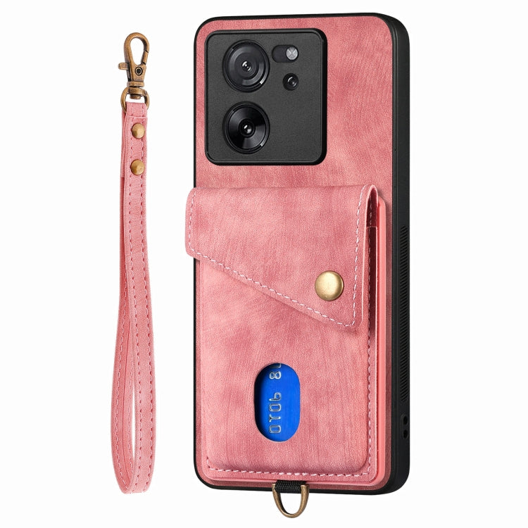 For Xiaomi 13T / 13T Pro Retro Card Wallet Fold Leather Phone Case with Strap(Pink)