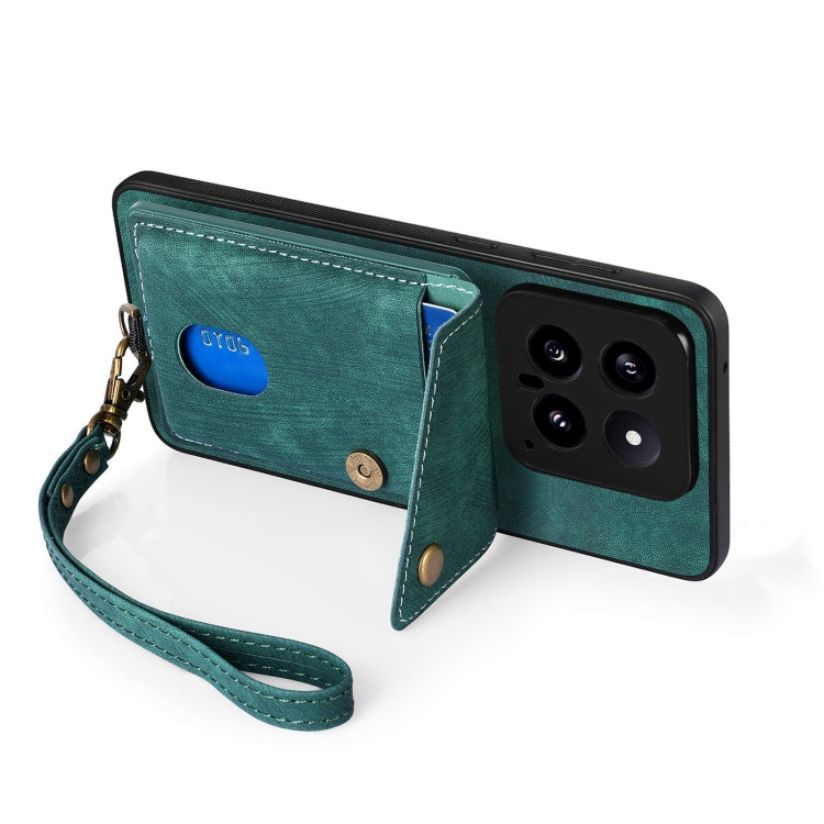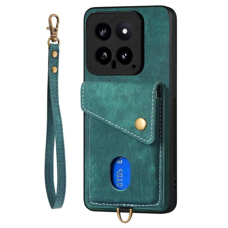 For Xiaomi 14 Retro Card Wallet Fold Leather Phone Case with Strap(Green)
