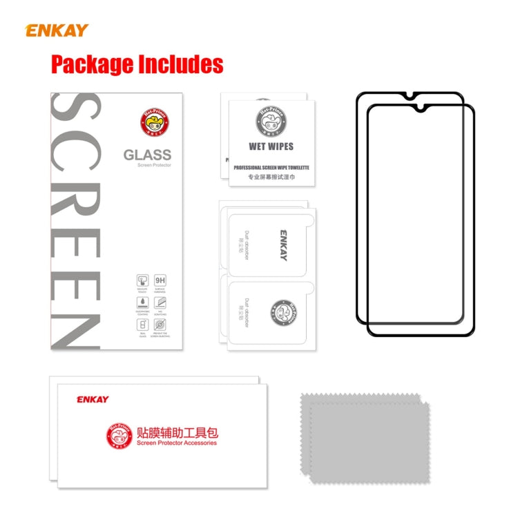 For Xiaomi Redmi 9T 2 PCS ENKAY Hat-Prince Full Glue 0.26mm 9H 2.5D Tempered Glass Full Coverage Film