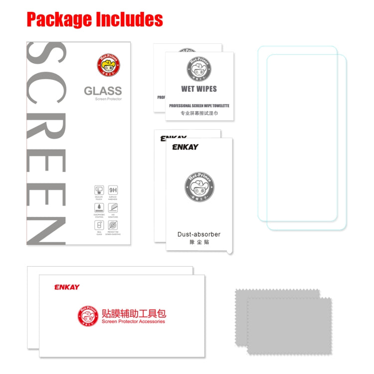 For Xiaomi Redmi Note 9 2 PCS ENKAY Hat-prince 0.26mm 9H 2.5D Curved Edge Tempered Glass Film