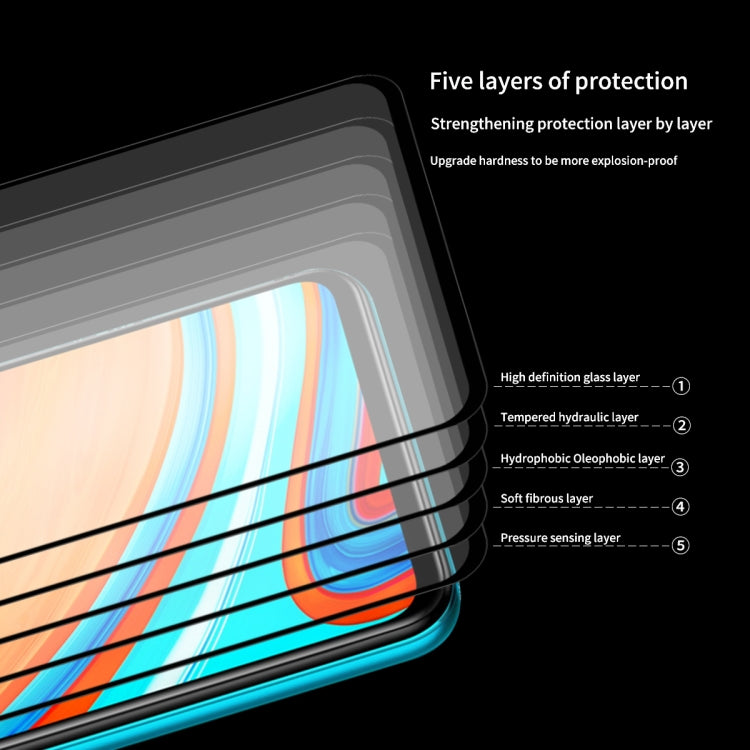 For Xiaomi Redmi Note 9 5 PCS ENKAY Hat-Prince Full Glue 0.26mm 9H 2.5D Tempered Glass Full Coverage Film