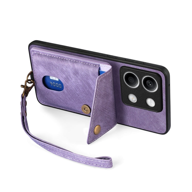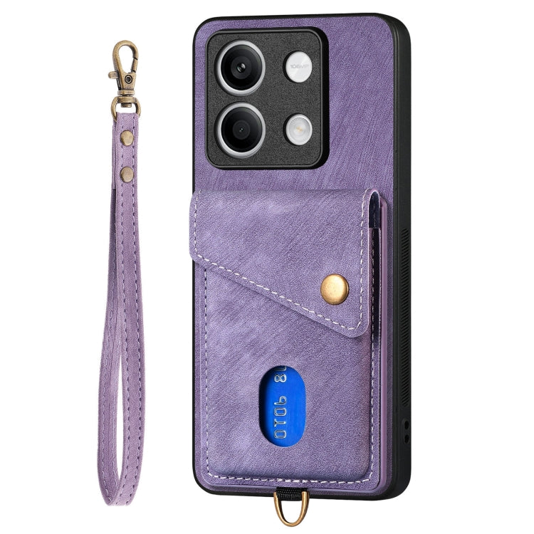 For Xiaomi Redmi Note 13 5G Retro Card Wallet Fold Leather Phone Case with Strap(Purple)