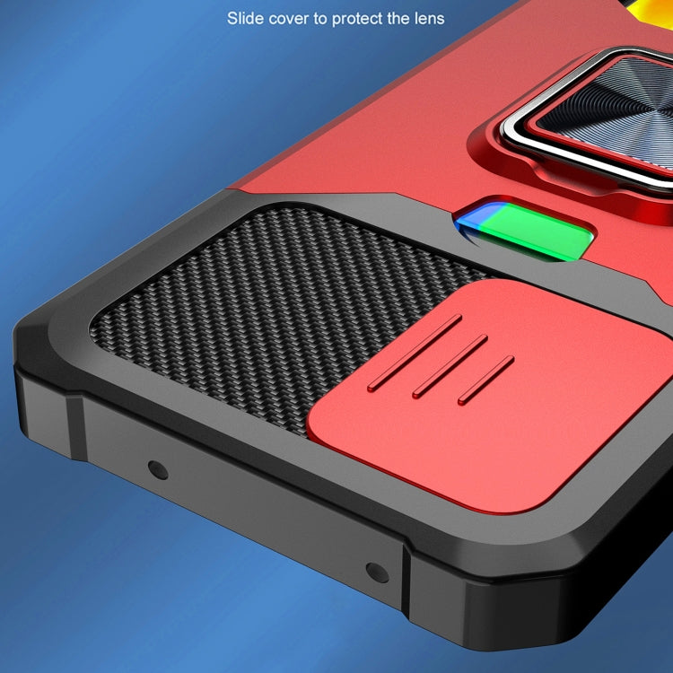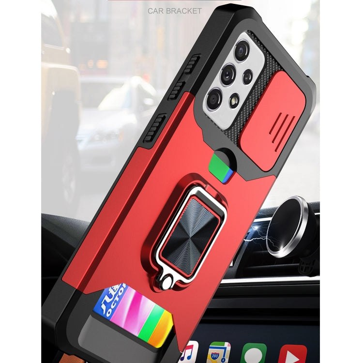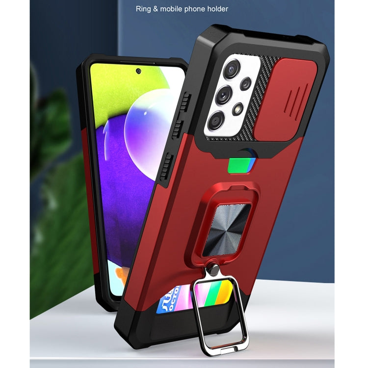 For Samsung Galaxy A52 Sliding Camera Cover Design PC + TPU Shockproof Case with Ring Holder & Card Slot(Red)