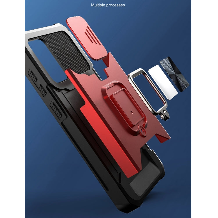 For Samsung Galaxy A72 Sliding Camera Cover Design PC + TPU Shockproof Case with Ring Holder & Card Slot(Rose Gold)