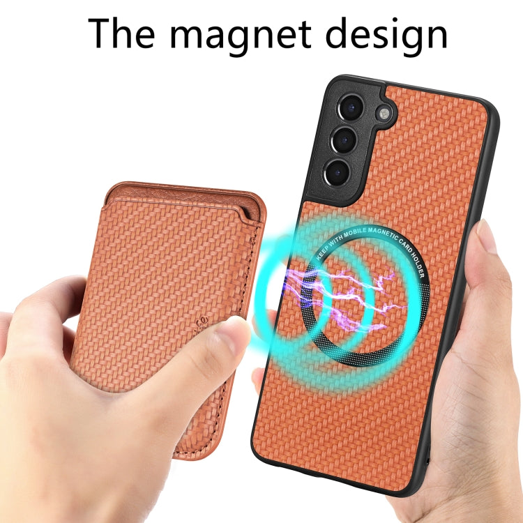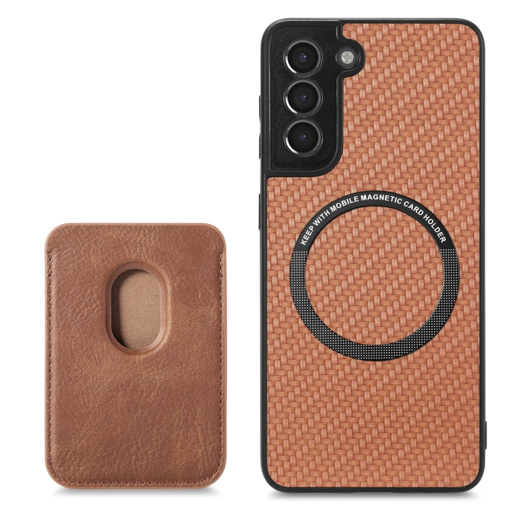 For Samsung Galaxy S21+ 5G Carbon Fiber Leather Card Magsafe Magnetic Phone Case(Brown)