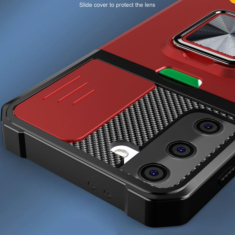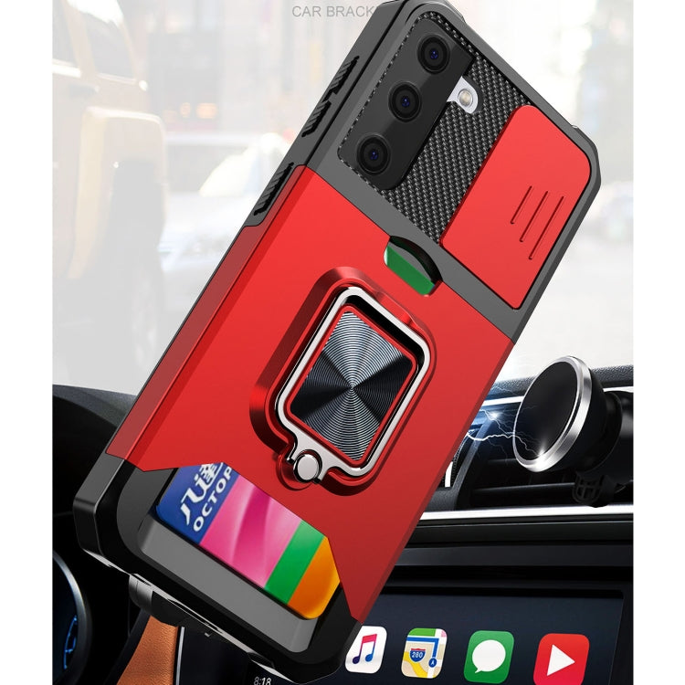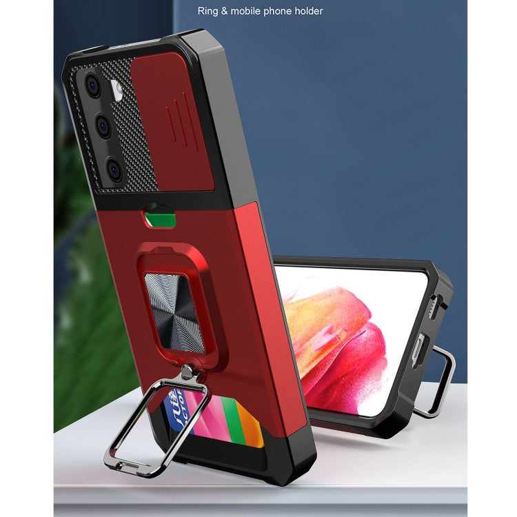 For Samsung Galaxy S21+ Sliding Camera Cover Design PC + TPU Shockproof Case with Ring Holder & Card Slot(Rose Gold)
