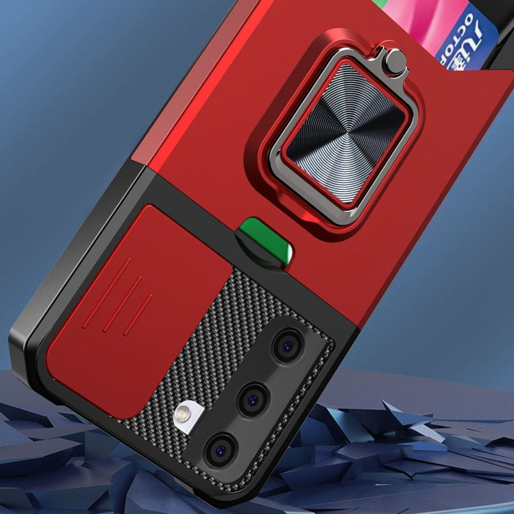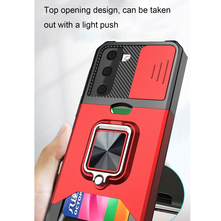 For Samsung Galaxy S21Sliding Camera Cover Design PC + TPU Shockproof Case with Ring Holder & Card Slot(Rose Gold)