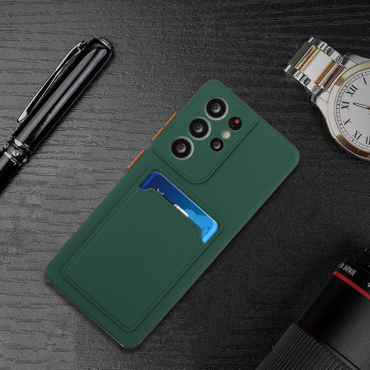 For Samsung Galaxy S22 Ultra 5G Card Slot Design Shockproof TPU Phone Case(Dark Green)