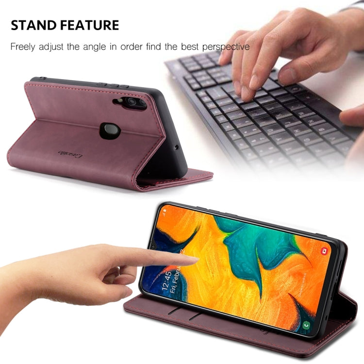 CaseMe-013 Multifunctional Retro Frosted Horizontal Flip Leather Case for Galaxy A40, with Card Slot & Holder & Wallet(Wine Red)