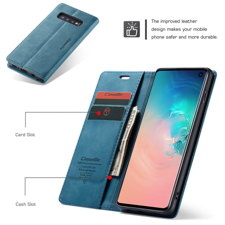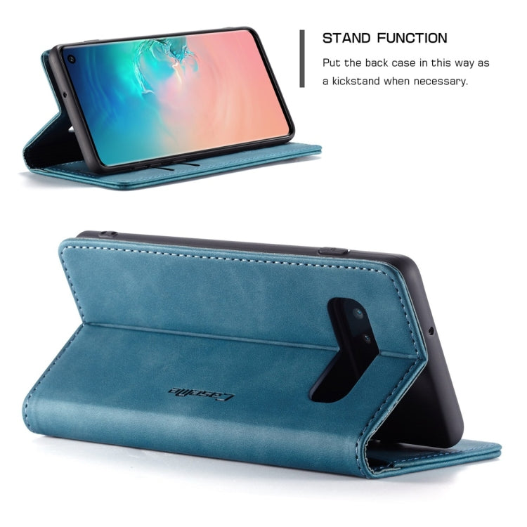 CaseMe-013 Multifunctional Retro Frosted Horizontal Flip Leather Case for Galaxy S10, with Card Slot & Holder & Wallet (Blue)