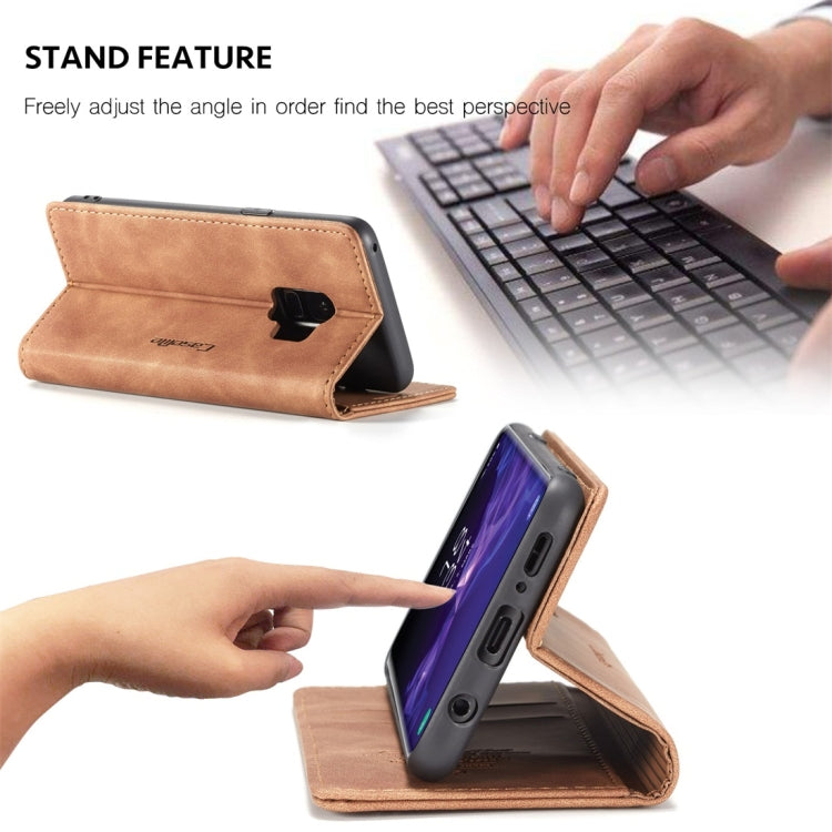 CaseMe-013 Multifunctional Retro Frosted Horizontal Flip Leather Case with Card Slot & Holder & Wallet for Galaxy S9(Brown)