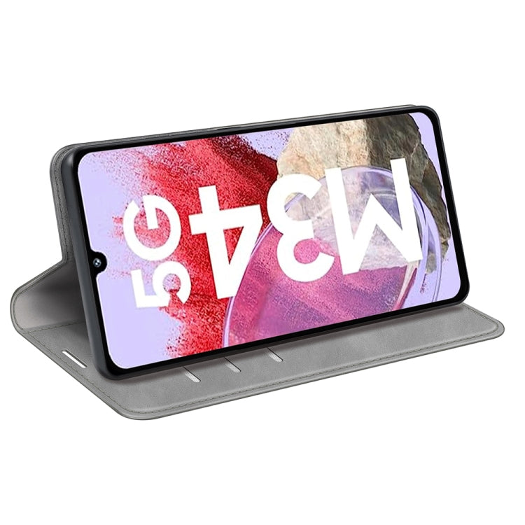 For For Samsung Galaxy M34 5G Retro-skin Magnetic Suction Leather Phone Case(Grey)
