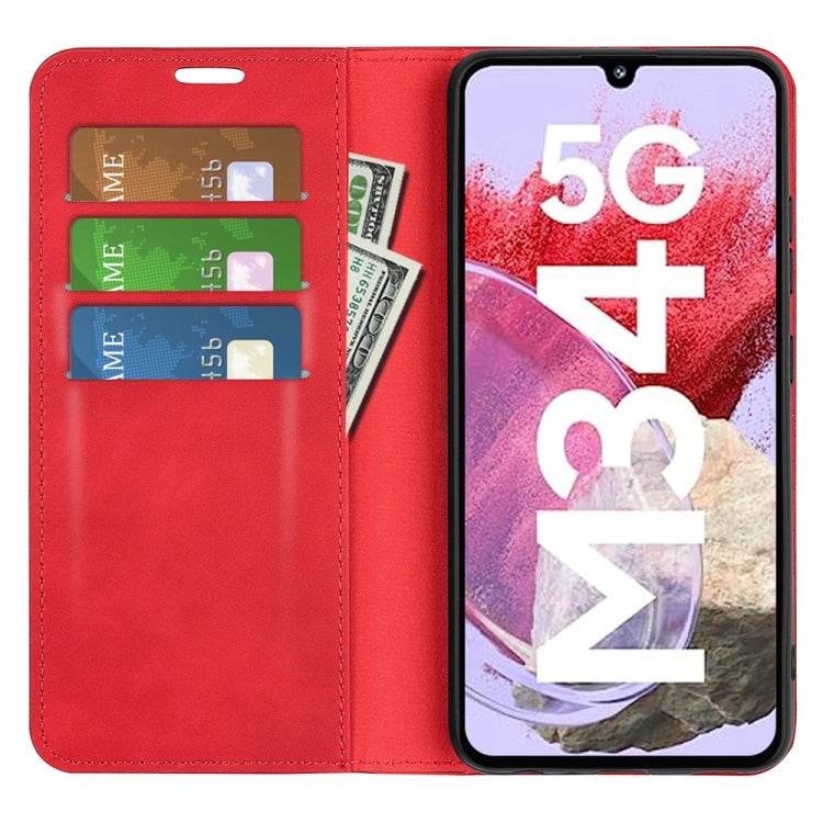 For For Samsung Galaxy M34 5G Retro-skin Magnetic Suction Leather Phone Case(Red)