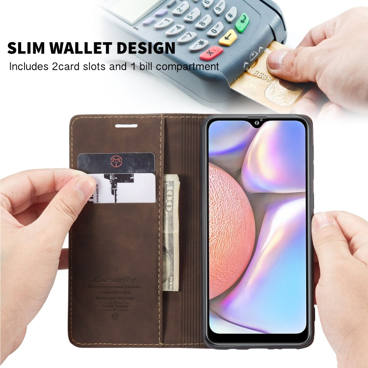 For Galaxy A10s CaseMe-013 Multifunctional Horizontal Flip Leather Case with Card Slot & Holder & Wallet(Coffee)