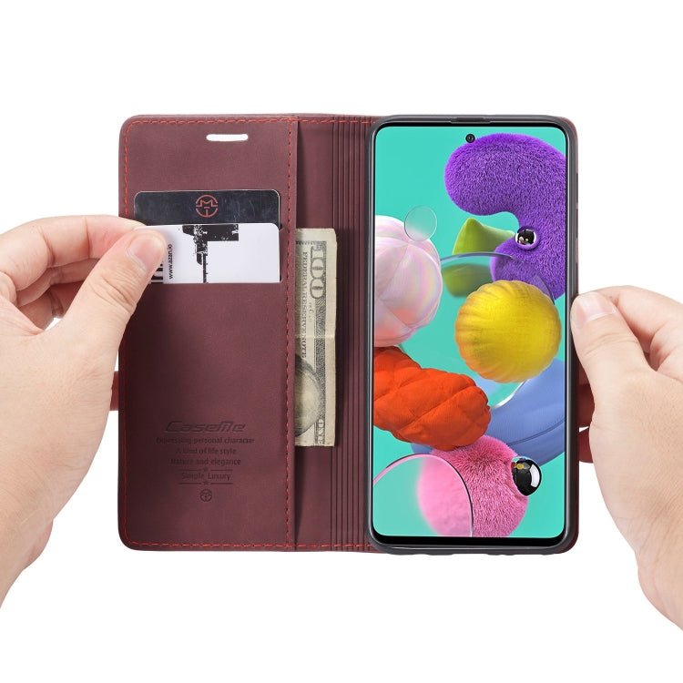 For Galaxy A51 CaseMe Multifunctional Horizontal Flip Leather Case, with Card Slot & Holder & Wallet(Wine Red)