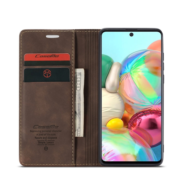 For Galaxy A71 CaseMe Multifunctional Horizontal Flip Leather Case, with Card Slot & Holder & Wallet(Coffee)