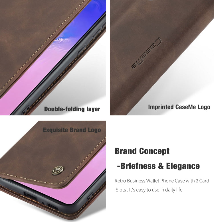 For Galaxy A91 / S10 Lite CaseMe Multifunctional Horizontal Flip Leather Case, with Card Slot & Holder & Wallet(Coffee)