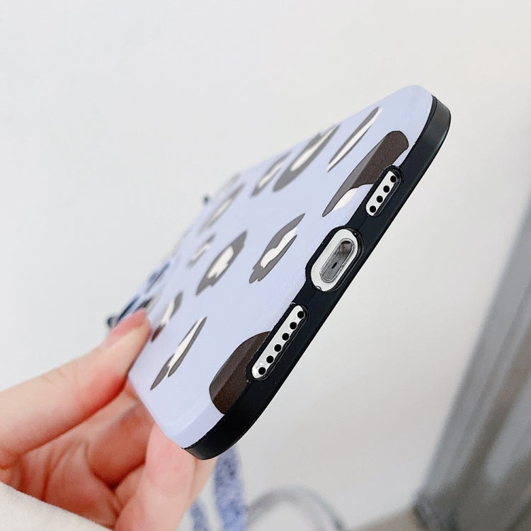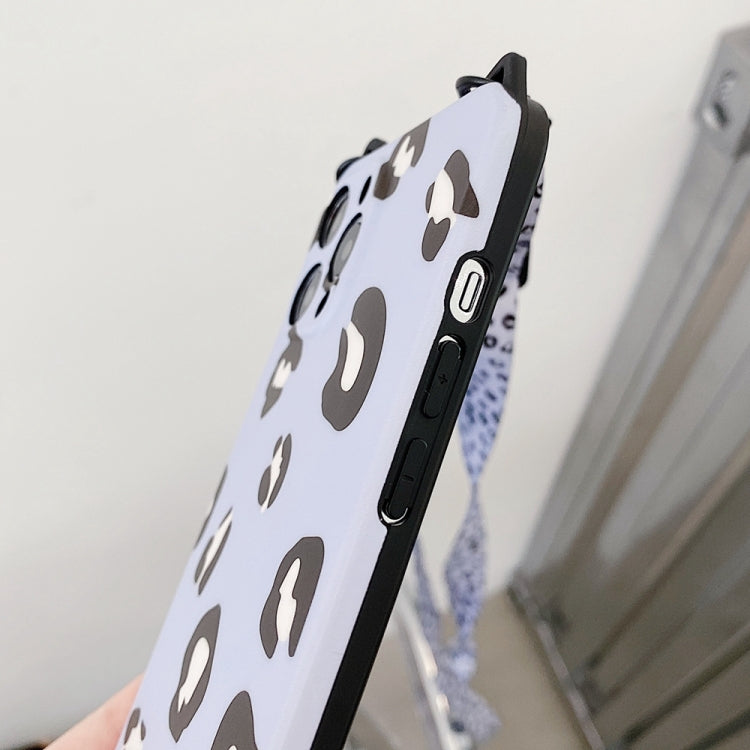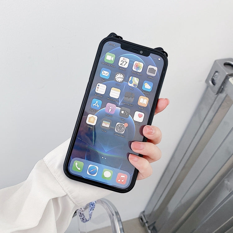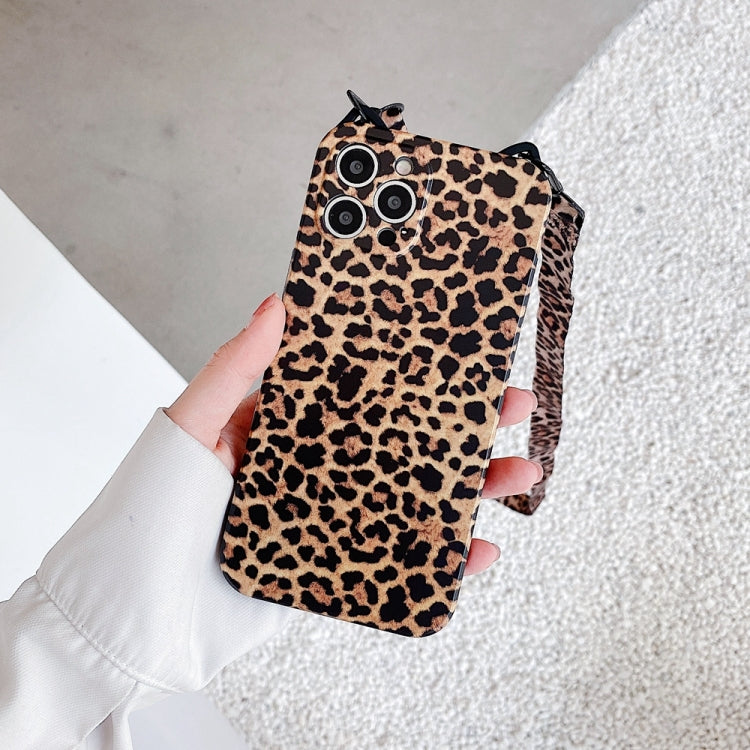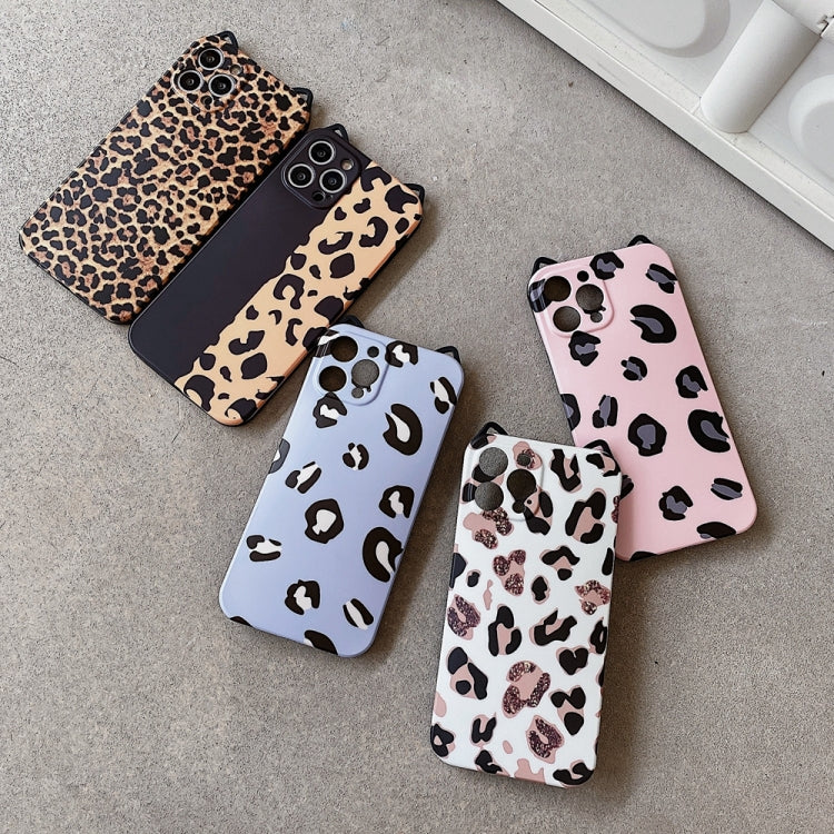 For iPhone 11 Cat Ear Leopard Print TPU Straight Edge Protective Case with Lanyard (Brown)