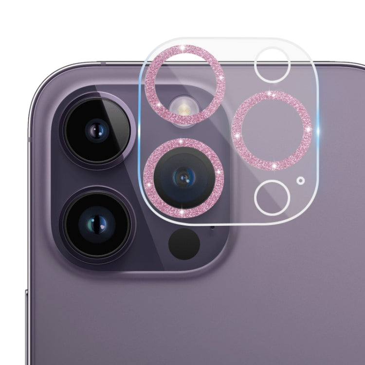 For iPhone 14 Pro Max / 14 Pro Tempered Glass Glitter CD Texture Back Camera Film(Pink)