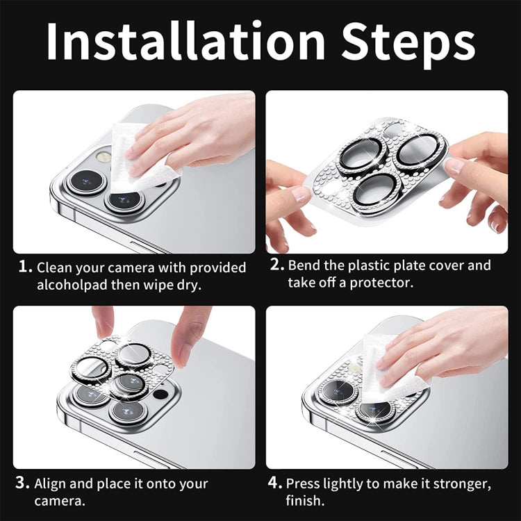 For iPhone 15 Pro / 15 Pro Max ENKAY Hat-Prince Blink Diamond Camera Lens Aluminium Alloy + Tempered Glass Full Coverage Protector(Dark Blue)