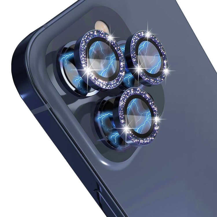 For iPhone 15 Pro / 15 Pro Max NORTHJO Camera Lens Protector Tempered Glass Bling Glitter Metal Ring Film(Blue)