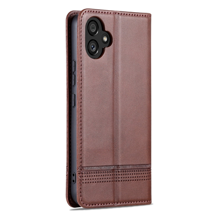 For Samsung Galaxy A05 AZNS Magnetic Calf Texture Flip Leather Phone Case(Dark Brown)