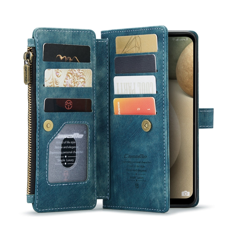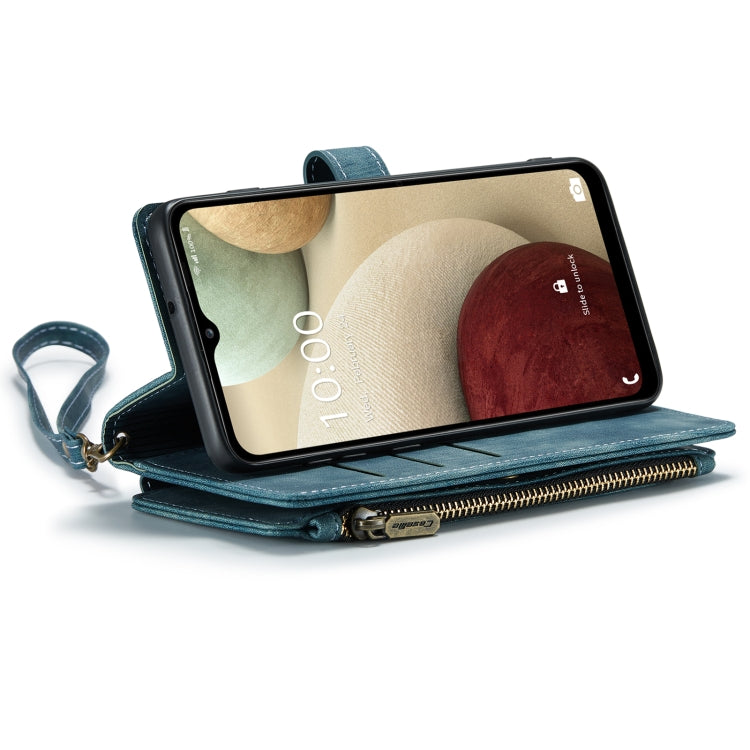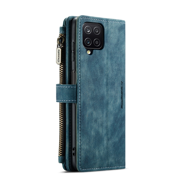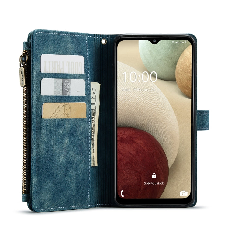 For Samsung Galaxy A12 CaseMe-C30 PU + TPU Multifunctional Horizontal Flip Leather Case with Holder & Card Slot & Wallet & Zipper Pocket(Blue)