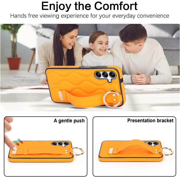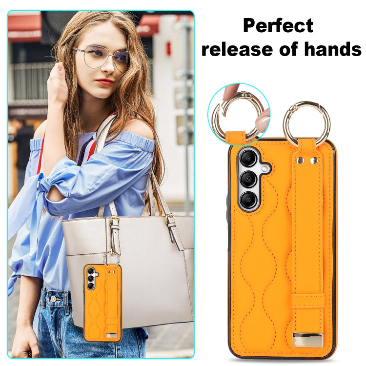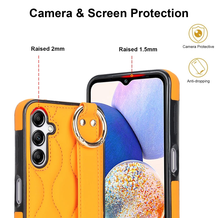 For Samsung Galaxy A14 4G / 5G Non-slip Full Coverage Ring PU Phone Case with Wristband(Orange)
