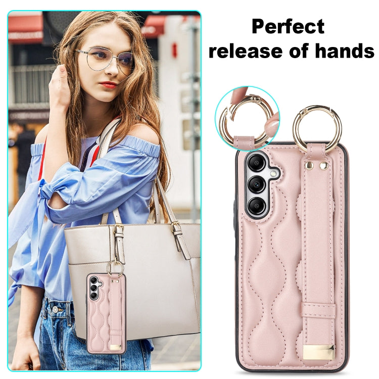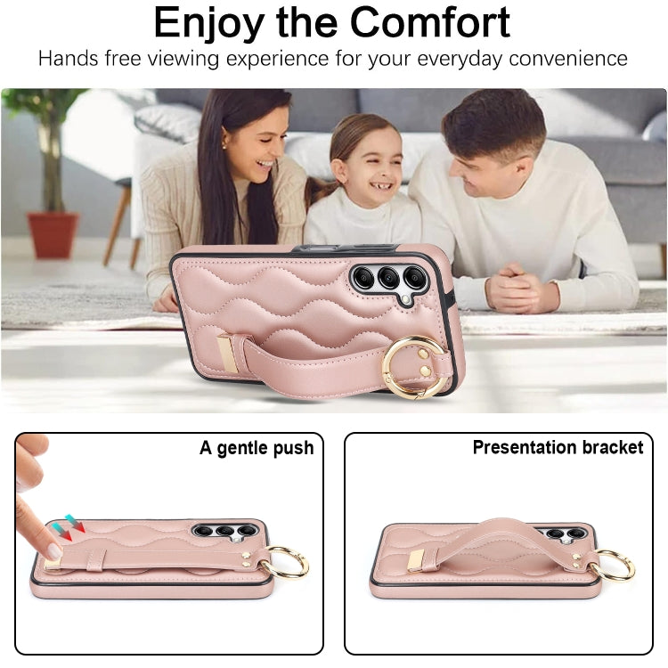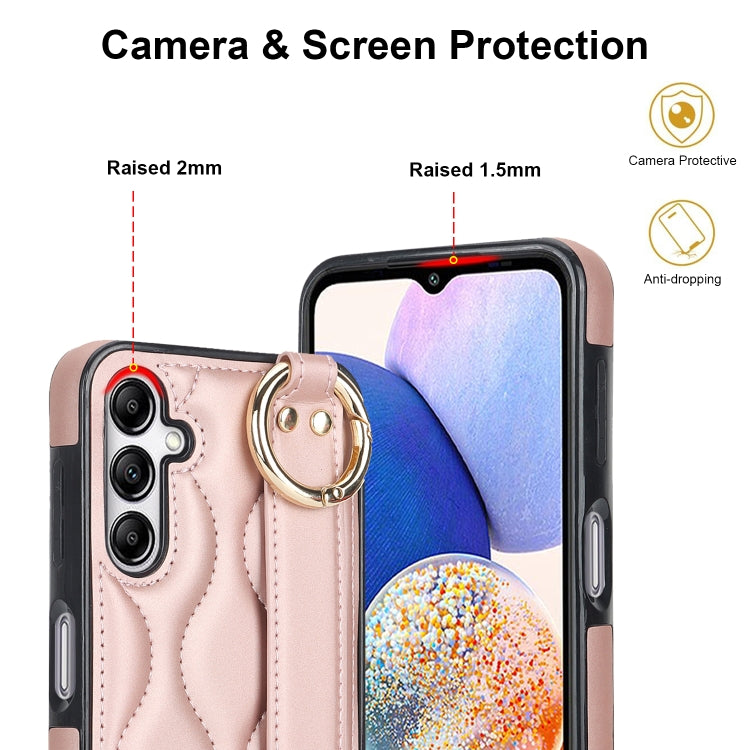 For Samsung Galaxy A14 4G / 5G Non-slip Full Coverage Ring PU Phone Case with Wristband(Rose Gold)
