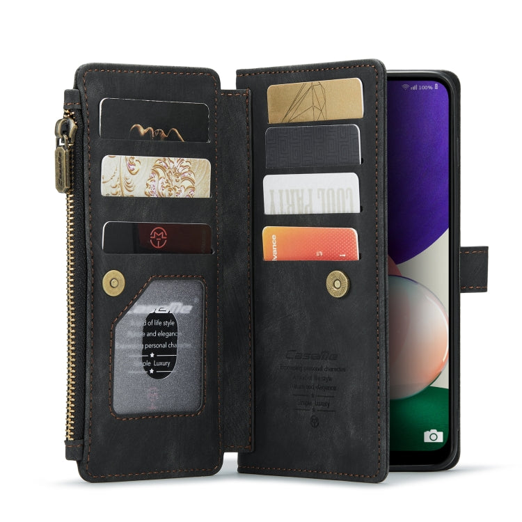 For Samsung Galaxy A22 5G CaseMe-C30 Multifunctional Horizontal Flip PU + TPU Phone Case(Black)
