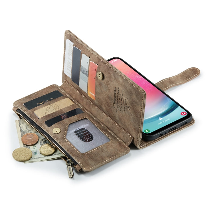 For Samsung Galaxy A24 4G CaseMe C30 Card Slots Zipper Wallet Leather Phone Case(Brown)
