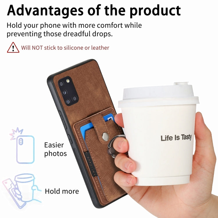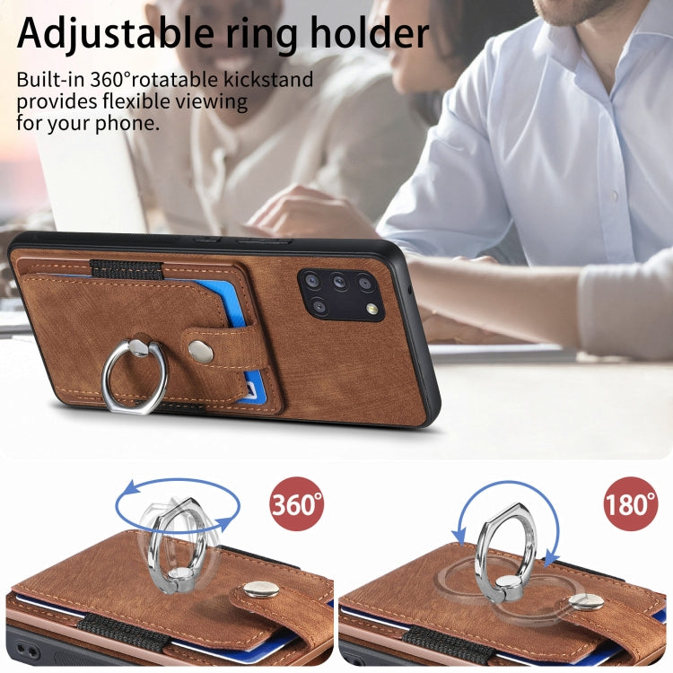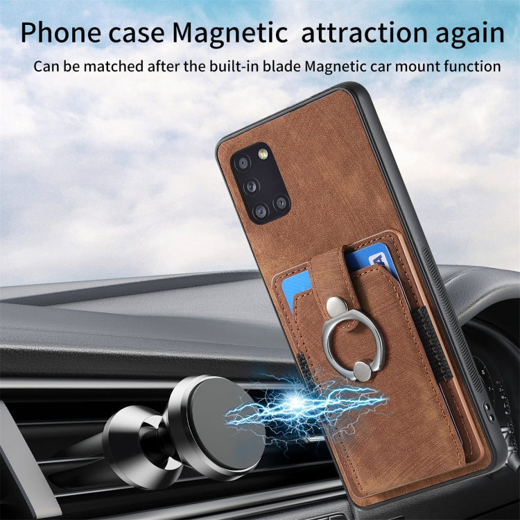 For Samsung Galaxy A31 Retro Skin-feel Ring Card Wallet Phone Case(Brown)