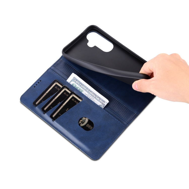For Samsung Galaxy A35 5G AZNS Magnetic Calf Texture Flip Leather Phone Case(Dark Blue)